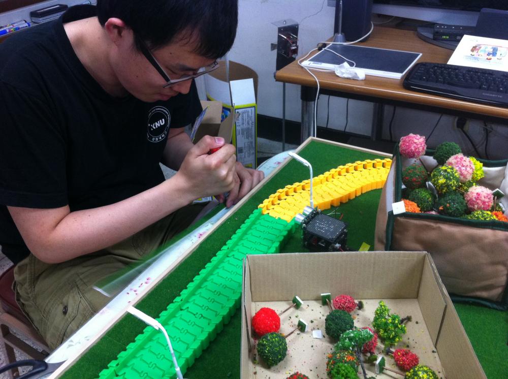 2012년 ITRC 출품한 스마트 도로 조명 시스템의 모형 제작에서 전시까지 사진입니다.